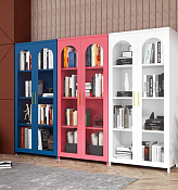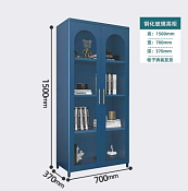 Изготовлен полностью из металла, оснащён стеклянными окошками и распашными дверцами. Современный дизайн делает шкаф отличным решением для хранения и оформления интерьера гостиной.