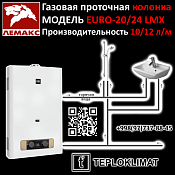 Газовые проточные водонагреватели (газовые колонки) «LMX» серии «Альфа»моделей «Евро-20» и «Евро-24» предназначены для мгновенного нагрева воды, обладают оригинальным дизайном лицевой панели и компактными размерами. Выпускаются в белой облицовке. Модели с открытой камерой сгорания, электророзжигом и многоуровневой системой управления. Аппараты легки в управлении и работают в автоматическом режиме.