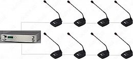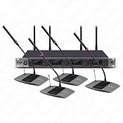 Беспроводная конференц-система Agile KX-D3934 , в состав которой входит 4 микрофонных пульта «гусиная шея». Легко интегрируется с персональным компьютером, аудио микшером или аппаратными терминалом видеоконференцсвязи. Рабочее расстояние до 80 метров на открытой местности. Цифровая регулируемая частота UHF. ЖК-экраны показывают рабочее состояние на блоке управления и микрофонах. Встроенный аккумулятор емкостью 2100mA позволяет микрофону работать на протяжении 15 часов с момента полной зарядки.<br />