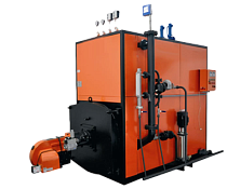 Трёхходовой по ходу газа паровой котёл, предназначенный для работы на природном газе с автоматической горелкой для вырабатывания пара высокого давления с естественной циркуляцией. Выход на рабочий режим парогенератора 15-20 минут после включения горелки.