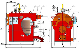 Твердотопливные водогрейные котлы предназначены для отопления и горячего водоснабжения жилых и общественных зданий , а также технологических нужд. Климатическое исполнение УХЛ 4.2.ГОСТ 15150-69. Конструкция котла имеет горизонтальную компоновку и состоит из следующих составных частей (см. таблицы и рисунок). На корпусе котла имеются все необходимые технологические патрубки и функциональные элементы: – входа воды; – выхода воды; – загрузки топлива; – выгрузки золы; – уходящих газов; – воздуховод; – дренаж. Котлы поставляются в сборе единым блоком. Котлы транспортируются без упаковки любым видом транспорта, согласно правилам перевозки грузов, действующих на транспорте данного вида. Удобство и простота обслуживания. Минимальный выброс вредных отходов. Пониженные шумовые характеристики. В работе котла заложен принцип противотока: продукты сгорания и вода движутся навстречу друг другу. Отдавая часть тепла, в основном излучением на радиационную поверхность топки, продукты сгорания через два дымогарных патрубка первого хода попадают в поворотную камеру, откуда в пучок дымогарных труб второго хода. Продукты сгорания отдают тепло воде и охладившись до определенной температуры, покидают пределы котла. Такая конструкция позволяет наиболее эффективно использовать тепло от сжигания топлива. Котел на 100% выполнен из стали. Для контроля давления воды в котле на патрубке установлен манометр показывающий электроконтактный ЭКМ-ΙV-1,0 МПа с трехходовым краном. Для контроля температуры воды в котле рядом с патрубком а2 предусмотрен патрубок для установки электронного датчика температуры