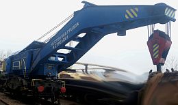 Железнодорожный поворотный кран «ЕДК 50», Завод-изготовитель: Предприятие им. Кирова, ГДР. Характеристики крана: Грузоподъемность: - с опорами при вылете 5,5-6,3 м - 50 т - при вылете 12 м - 18 т - без опор при вылете 5,5-6,3 м - 13 т - без опор при вылете 12 м - 4т Высота подъема: - макс. высота подъема крюка при вылете 5,5 м - 10 м - макс. высота подъема крюка при вылете 12 м - 6 м Длина крана с буферами: прим. 10,85 м Общий вес крана: 104,5 т Род привода: дизельно-электрический Род тока и напряжение: - силовая цепь – переменный ток – 380 V, 50Hz - рабочего освещения - переменный ток – 127 V.