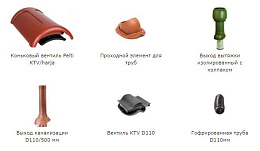 Выходы для вентиляции подкровельного пространства устанавливают на скатах и коньке кровли. Их количество зависит от конфигурации кровли, наличия так называемого «холодного треугольника» под коньком, присутствия конструкций, затрудняющих свободный ток воздуха (окон, шахт, перекрытий). На кровле с «холодным треугольником» в среднем устанавливают один скатный вентиляционный элемент на 60 м2, на кровле без него — по выходу на каждый стропильный пролет. Коньковые дефлекторы располагают с интервалом 3 м. Задача выходов канализации и внутренней вентиляции — обеспечить герметичный проход труб сквозь кровельный материал, не допустить задувания ветра, попадания в систему влаги и ее засорения извне.