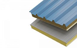 Трёхслойные сэндвич-панели (ТСП), как следует из названия, созданы по принципу сэндвича: два стальных листа, между ними утеплитель. Всё это соединяется двухкомпонентным полиуретановым клеем. Таким образом, сэндвич-панели, поставляемые на площадку, полностью готовы к монтажу, что значительно экономит время и затраты на строительство.
