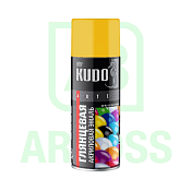 KUDO глянцевая акриловая эмаль желтая 520 мл — высококачественная аэрозольная краска с глянцевым финишем, предназначена для окрашивания металла, дерева, бетона и пластика, создавая яркий желтый цвет с высокой укрывистостью.