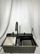 2. Многофункциональный Смеситель в цвет мойки с функцией водопад и выдвижной лейкой с режимами струя/душ/мойка, управление включением/выключением воды и настройкой температуры осуществляется одной ручкой.