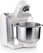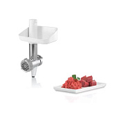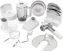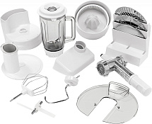 В комплектацию входят: металлическая чаша объёмом 3,9 литра, крюк для теста, венчик для помешивания, венчик для взбивания, насадка-мясорубка, а также подставка для аксессуаров и подробная инструкция. Такое разнообразие насадок делает Bosch MUM4880 полноценным помощником на кухне для самых разных рецептов.