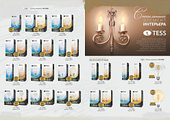 В ассортиментный ряд ламп ТМ «TESS» входят светодиодные лампы разными формами: грушеобразные, свечеобразные, каплевидные и типа MR16; с цоколем Е14, Е27, GU5.3; с цветовой температуры 3000К-тёплый, 4000К-лимонный и 6500К-дневной.