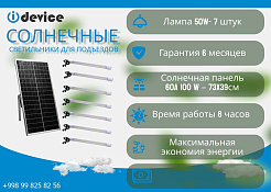 В комплект входит солнечная панель и 7 ламп мощностью 50 Вт.