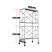 Оцинкованные строительные леса с настилом и тормозными колёсами. Прочные, удобны в сборке и перемещении.