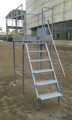 В целях выравнивания площадок относительно пола, площадки оснащены регуляторами высоты, установленные на опорах конструкций, так же они укомплектованы съёмными лестницами, что упрощает процесс их транспортировки. Ступеньки и полы площадки имеют антискользящую поверхность. Дополнительное оборудование: