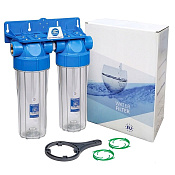Aquafilter FHPRCL34-B-TWIN - двухступенчатый магистральный фильтр для очистки воды. Колбы имеют стандартный размер 10" с латунной резьбой на 3/4 дюйма. FHPRCL34-B-TWIN - это прочный фильтр, который имеет высокое качество и сделан из сертифицированных компонентов NSF и WRAS.