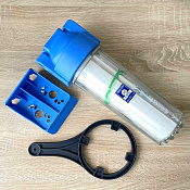 Aquafilter FHPR34-B1-AQ Фильтр магистральный комплект 3/4 — 10-ти дюймовый линейный корпус с клапаном сброса давления и прозрачной колбой, кронштейном с саморезами, монтажным ключом, полипропиленовым картриджем PP5, бактериостатическим диском-стабилизатором, инструкцией и цветной картонной упаковкой. Размер латунных резьбовых вставок: 3/4 дюйма BSP. Сочетание конструкции корпуса и наличия двух уплотнительных колец (внутри крышки и на колбе) гарантирует максимальную герметичность при работе.