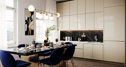 Evogloss Галактика Кремовая галактика 18x1220x2800 — новый тип глянцевых фасадных материалов для современного интерьера. Материал Evogloss незаменим в отделке кухонь, спален, ванных, гардеробных, а также стен в любом жилом помещении.