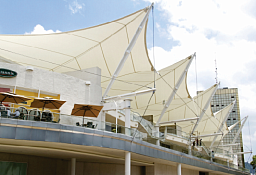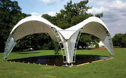 Мембранные навесы и конструкции - это каркасно-тентовые сооружение из ПВХ кровли сложной пространственной, наделяющей сооружение уникальным архитектурным образом на фоне классических конструкции и прямых форм из железа и бетона. Конечный результат - эффектное мембранное сооружения удивительной необычной формы.