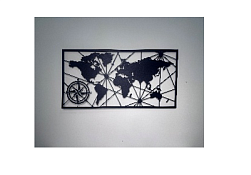 Добавьте стильный акцент в ваш интерьер с уникальным настенным панно «Карта мира». Изготовленное из прочного металла, это панно сочетает элегантный минимализм и геометрические линии, создавая современный и изысканный вид. _x000D_