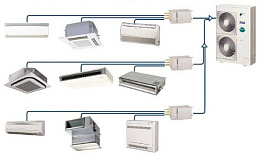 - В крупных жилых домах, а также на различных объектах с увеличенной площадью, таких как виллы, рестораны, как правило, требуется установка нескольких внутренних блоков. При установке обычных сплит-систем это означает, что на наружных стенах здания будет размещено несколько наружных блоков, что, в свою очередь, негативно сказывается на внешнем виде фасада. Системы VRF Mini являются эффективным решением данной проблемы.