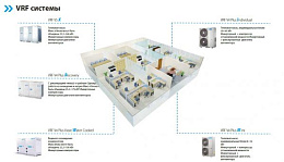 - Система VRF Mini позволяет быстро достичь желаемого значения температуры. Затем температура плавно регулируется в заданных пределах. Колебания температуры невелики, что в свою очередь гарантирует комфортные условия.