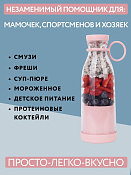 Способ применения: Вставьте погружную часть блендера в бутылку, залейте ингредиенты, включите блендер и наслаждайтесь своим напитком.