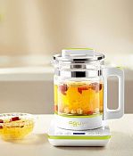 В комплект устройства входит: крышка чайника, стеклянный чайник, основание чайника, емкость для приготовления пищи, емкость для подогрева и стерилизации, крышка для стерилизации.