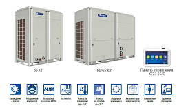 Компактные модульные чиллеры воздушного охлаждения со спиральными компрессорами позволяют подключать фанкойлы любого типа, были специально разработаны для охлаждения воды в системах кондиционирования как жилых, так и промышленных зданий.