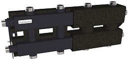 Модульный коллектор MK-60-5DU.EPP с термоизоляцией предназначен для распределения теплоносителя на 5 контуров (2+2+1) или объединения нескольких котлов в единую магистраль DN25.