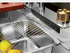 Современная многофункциональная мойка - это настоящий умный гаджет для кухни. Изготовлена из качественной нержавеющей стали с антибактериальным нескользящим нанопокрытием, устойчивым к сколам, царапинам и загрязнениям. Дно чаши выполнено с уклоном в сторону слива, за счет чего вода не задерживается на дне. На стенках чаши имеются направляющие, позволяющие устанавливать доску и дополнительную корзину для мытья. Мойка не впитывает грязь и запахи, легко очищается и очень проста в уходе. Укомплектована смесителем, донным клапаном, дренажной корзиной и разделочной доской.