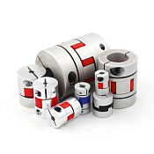 Муфты виброгасящие. кулачковые разборные с полиуретановой вставкой. Посадка на вал стяжным винтом. Данный вид муфт благодаря упругой вставке позволяет гасить вибрации. возникающие при вращении вала. Также данные муфты способны компенсировать небольшие несоосности и перекосы. возникшие после монтажа валов (угол несоосности < 1°).