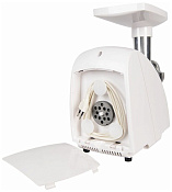 Очень удобно хранить дополнительные насадки и шнур во встроенном отсеке в мясорубке.