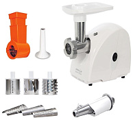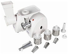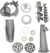 Благодаря трем дискам для фарша с отверстиями разного диаметра (5, 7 и 9 мм) можно делать фарш разнообразной консистенции: как для котлет, так и для детского питания, к примеру.