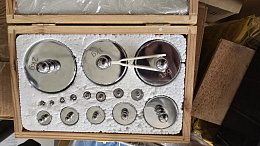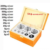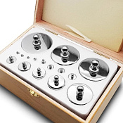 Набор гирь М1 от - 1гр до -2кг (16 гирь) из немагнитной нержавеющей стали аустенитного класса, класса точности М1, поставляется в футляре, вместе с необходимыми принадлежностями (х/б перчатки, пинцет).