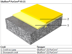 На основе полиуретановой смолы и цемента, является частью системы напольного покрытия Sikafloor 21 PurCem. Система Sikafloor 21 PurCem обладает высокой химической и ударной стойкостью, и может применяться в помещениях с сухими и влажными процессами. Система состоит из основного высокопрочного полиуретан-цементного покрытия, обладает легко очищаемой и гладкой поверхностью со средней стойкостью к скольжению. Обычно укладывается толщиной от 4 до 6 мм.