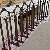 Помимо оригинального внешнего вида, напольная вешалка это, безусловно, функциональный предмет. Конструкция негласно поделена на три зоны. В верхней части вы можете разместить рубашку или пиджак. Средняя часть предназначена для брюк или юбок. Причем данная модель оснащена сразу тремя перекладинами, а значит большее количество Ваших вещей смогут сохранить опрятный вид.
