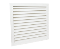 Решетки представляют собой прямоугольную раму с установленными в нее неподвижными жалюзи, которые препятствуют проникновению атмосферных осадков с улицы.
