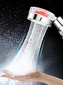 Эта насадка- идеальный вариант для тех, у кого низкое давление в водопроводе, ведь пропеллер внутри головки не только увеличивает выпускное давление, но и делает из струи прекрасную фигуру!