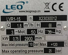 Насосы вертикальные многоступенчатые из нержавеющей стали LEO LVR1-15
