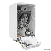 После установки дополнительной платы можно управлять 3-им контуром со смесительным клапаном. После подключения датчика ГВС можно управлять (с приоритетом) контуром ГВС. Панель управления специально разработана для управления комбинированными системами отопления. - Вентилятор с обратным клапаном на подаче воздуха для горения предназначен для работы в системах отвода продуктов сгорания под избыточным давлением.