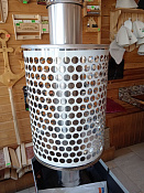 Сетка-каменка натрубная для печей изготовлена из стали российской компании ГефестСталь. Монтируется на одинарную трубу дымоходом с диаметром 115 мм. Сетка устанавливается на смонтированный дымоход, без его отстыковки от печи.