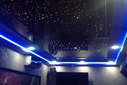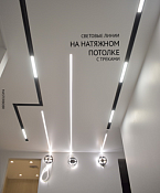 печати и однотонные потолки разных цветов и трековые освещение с различными лампами