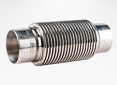 Осевые компенсаторы являются приборами, используемыми для компенсации температурных расширений жидкостей, проходящих в колоннах трубопроводов. Монтаж металлических сильфонных компенсаторов осевого типа производится по всей длине трубопровода, в соответствии со значениями расширений, рассчитанными при разделении трубопровода на отделы. Стандартный компенсатор осевого расширения производится с осевыми ходами 30 мм и 60 мм. По желанию и в зависимости от трубопровода, возможно производство компенсаторов с разным числом ходов. Основным элементом компенсаторов осевого расширения является сильфон, изготавливаемый из нержавеющей стали. По желанию и при необходимости, к сильфону могут прилагаться дополнительные элементы: внутренняя рубашка, шпильки (стержни), защитная покрышка и т.д. Толщина стенок, число слоев и прилагемые элементы сильфона выбираются в соответствии с типом, давлением и температурой жидкости. <br />