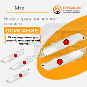 Нож MTX 18 мм, выдвижное трапециевидное лезвие, отделение для лезвий, металлический корпус, 789679-- это универсальный нож с выдвижным переменным трапециевидным лезвием. Металлический корпус. Для повышения безопасности при перерезании шнура, веревки, шпагата без предъявления лезвия в корпусе есть специальный паз. Автоматическая фиксация лезвия. Имеет отделения для запасных лезвий.