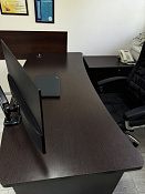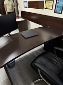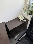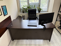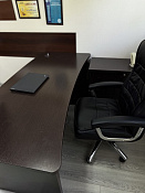 Продается солидный офисный стол для руководителя с приставной тумбой. Стол выполнен в строгом темно-коричневом цвете (венге), подходит под любой деловой интерьер.