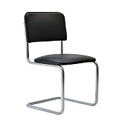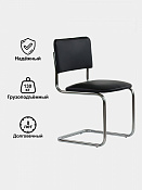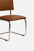 Стул на полозьях из прочной круглой металлической трубы с хромированным покрытием.