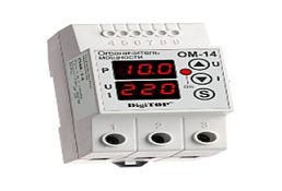 Ограничитель мощности ОМ-14 - предназначен для контроля потребляемой мощности в однофазной электрической сети. Имеет функцию контроля напряжения. Программируемые параметры: значение верхнего придела по мощности, время задержки включения / выключения, количество циклов повторного срабатывания, значение верхнего и нижнего пределов напряжения.