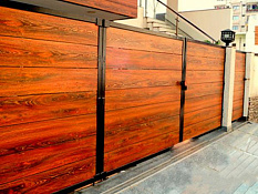Ограждения из HPL-панелей. HPL-панели (Ламинат Высокого давления) — это технологичный современный материал для облицовки, который представляет собой крупноформатные композитные панели с уникальными свойствами. Могут использоваться для: - облицовки фасадов зданий - декоративного оформления интерьеров - производство мебели - изготовление террасных настилов Размер плит: 2440х1220 мм 3050х1220 мм 3050х1300 мм 3670х1840 мм Толщина 3, 6, 8, 10 мм Плотность: 1,3-1,4 г / см3; Прочность: свыше 80 МПа - на изгиб, свыше 60 МПа - на растяжение. Упругость при сгибе: 9000 Мпа Класс пожарной безопасности - КМ1, степень горючести - Г1 (слабогорючий).