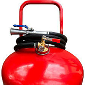 Огнетушитель порошковый класса ABCЕ/100кг.с маном длиный шланг с раструбом и тележкой на больших колесах
