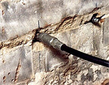 Изоляция как узких сквозных трещин в бетонных конструкциях, так и большого количества мелких щелей в кирпичной кладке.