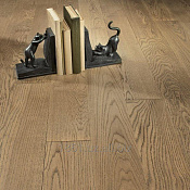 Ширина планок 190 мм. Неограниченная вариация цвета, контрастная заболонь, прожилки и свилеватость. Присутствуют сучки любых размеров, отреставрированные или открытые, пластевые и торцевые трещины, червоточины. Открытые трещины и сучки создают эффект старины, подчеркивают натуральность и солидность дубовых паркетных полов.