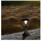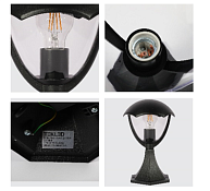 Улично-садовый светильник, черный, используется для освещения садовых аллей и дорожек. Корпус выполнен из алюминиевого сплава, который стоек к коррозии, и покрыт термостойкой краской. Светильник имеет погодозащитную конструкцию и может использоваться в широком диапазоне температур. Такой фонарь прост в установке и эксплуатации. Его можно эксплуатировать с лампами накаливания, энергосберегающими и светодиодными лампами.