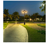 Улично-садовый светильник, черный, используется для освещения садовых аллей и дорожек. Корпус выполнен из алюминиевого сплава, который стоек к коррозии, и покрыт термостойкой краской. Светильник имеет погодозащитную конструкцию и может использоваться в широком диапазоне температур. Такой фонарь прост в установке и эксплуатации. Его можно эксплуатировать с лампами накаливания, энергосберегающими и светодиодными лампами.